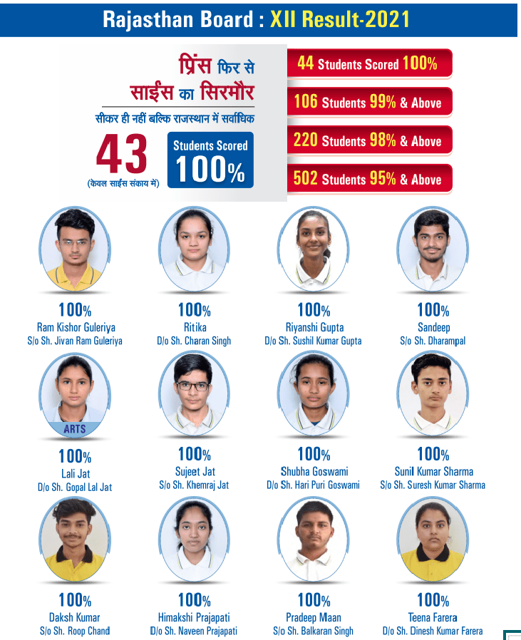 Prince School is affiliated to the Board of Secondary Education, Rajasthan (RBSE) and is regarded as one of the Best Schools in Sikar Rajasthan. A unit of the educational group – Prince Eduhub, Sikar, Prince School has given three toppers of Rajasthan till date. The school aims to place a strong emphasis on the overall development of students along with focusing on academic excellence.